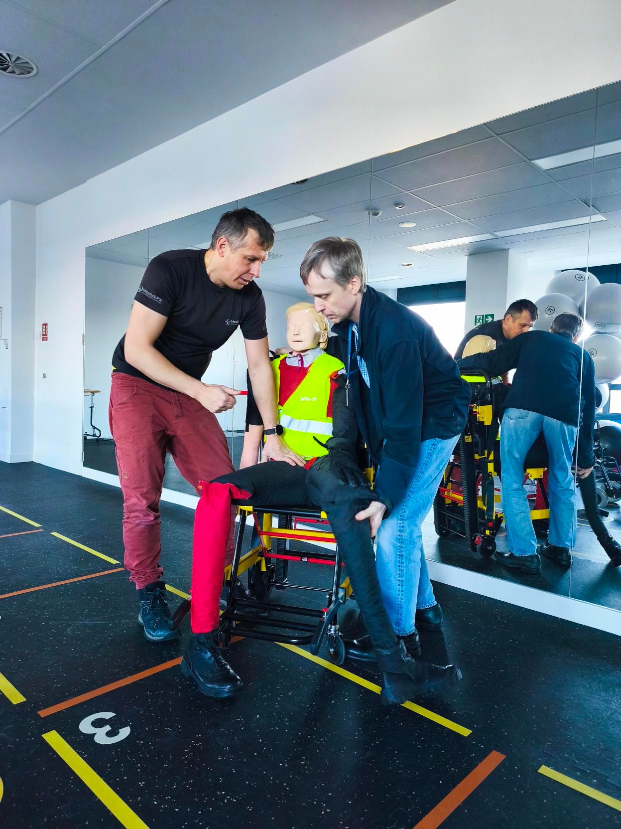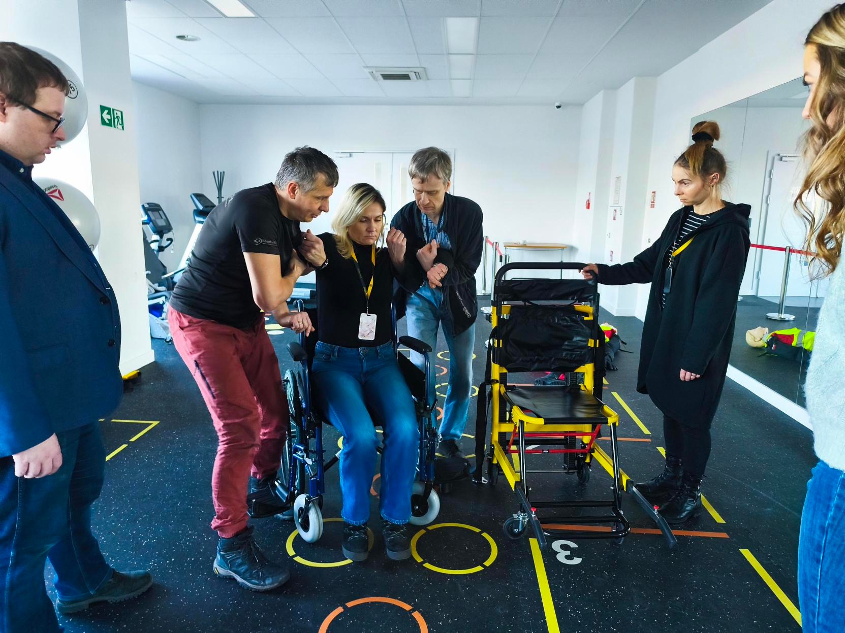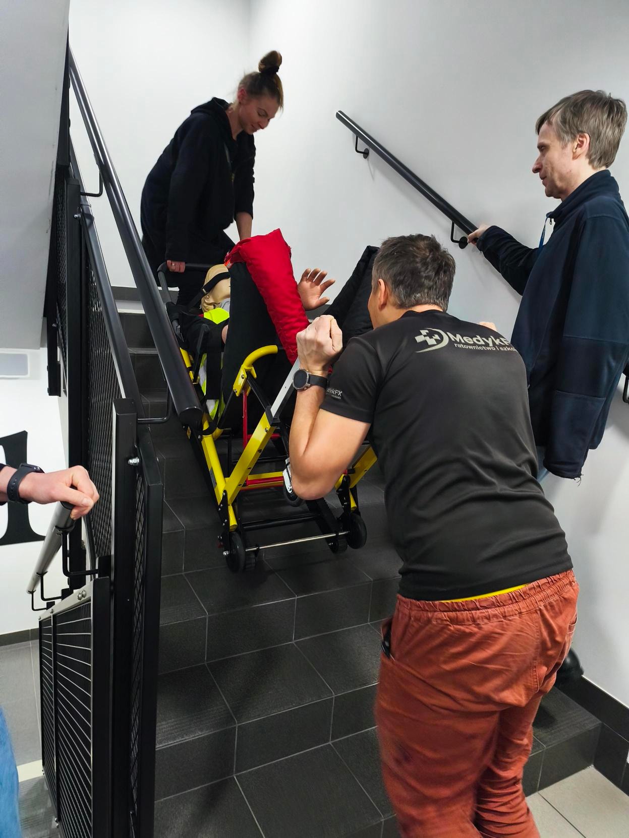 Zespół BON odbył szkolenie w zakresie ewakuacji osób w sytuacji zagrożenia z wykorzystaniem schodołazu. Takie krzesła ewakuacyjne zapewniają możliwość bezpiecznego transportu klatką schodową osoby, która nie może poruszać się samodzielnie.